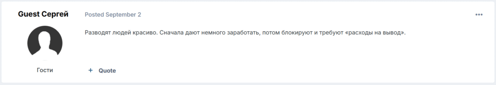 Один из пострадавших пишет, что после внесения повторного пополнения его личный кабинет был заблокирован без объяснений. Другой отмечает, что поддержка компании либо игнорировала обращения, либо отвечала шаблонными фразами, которые не решали проблему. Один из последних отзывов: