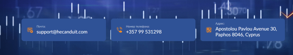 Первое впечатление от сайта Hecanduit создаётся положительное: современный дизайн, убедительная подача, якобы лицензии и сертификаты, описание выгодных условий для трейдеров. Компания обещает новичкам помощь персональных аналитиков, автоматическую торговлю и прозрачность операций. Но уже при ближайшем рассмотрении становится очевидным, что эти заявления не имеют под собой реальной основы. Проверка регистрационных данных показывает, что брокер не имеет лицензии ни от одного авторитетного регулятора. На сайте отсутствуют достоверные сведения о юридическом адресе и компании-операторе, что делает невозможным даже идентификацию организации в официальных реестрах.