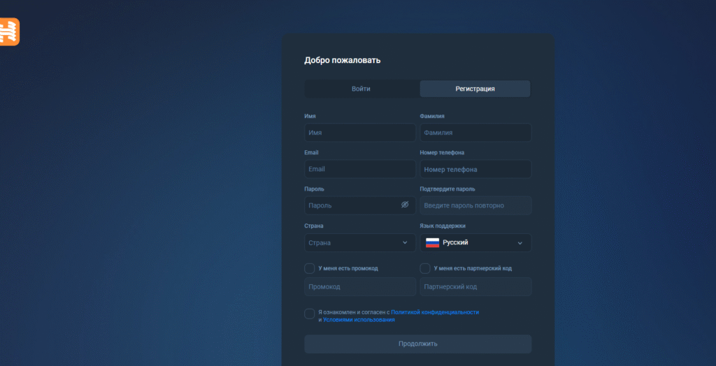 Так выглядит регистрация брокера.