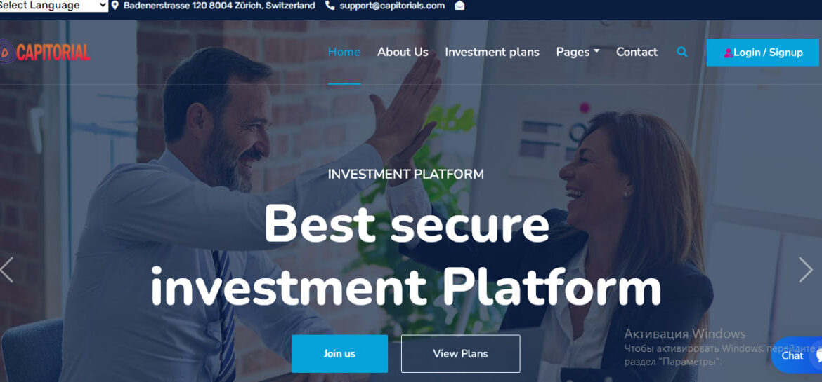 На основном сайте проекта указаны стандартные сервисные страницы: «О нас», «Политика конфиденциальности», «Условия», «Контакты», «Инвестиционные планы» и «Статистика выплат». В качестве контактного адреса для связи компания размещает e-mail support@capitorials.com и приглашает пользователей регистрироваться через форму на сайте. На странице «Условия» проект описывает набор сервисов, среди которых упоминаются продукты, связанные с майнингом и инвестиционными планами, то есть пользователю предлагают участвовать в некой схеме получения дохода от технологических/инвестиционных предложений. На сайте также есть страница «Withdrawal Statistics», оформленная как доказательство успешных выплат. Эти публичные заявления мы фиксируем как элементы «витрины», на которые будет полезно обратить внимание при оценке надежности.